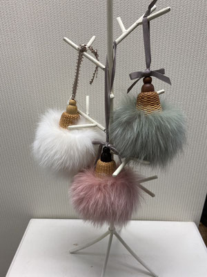 ナンタケットバスケットとファーを組み合わせたおしゃれなチャームを作ります。